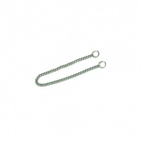 Collare realizzato con catena e due anelli in ferro cromato. Facendo passare la catena all'interno di un anello permette di realizzare un collare a strozzo.